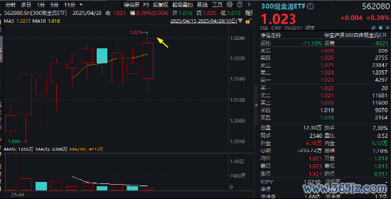 ETF方面,被动跟踪300现金流指数的300现金流ETF(562080)场内同步收涨。从日k走势来看,截至收盘,“562080”上市10个交易日中有9日收出阳线,今日场内价格上探1.025元,收于1.023元,最高价及收盘价双双刷新上市以来新高。