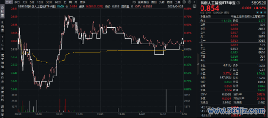 A股主要指数盘整收跌,科创板人工智能方向逆市活跃,截至收盘,恒玄科技涨超5%,当虹科技、奥普特、寒武纪-U携手涨超3%。热门ETF方面,重点布局在国产AI产业链的科创人工智能ETF华宝(589520)场内价格一度摸高0.7%,收涨0.12%,斩获日线2连阳。